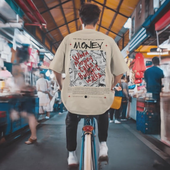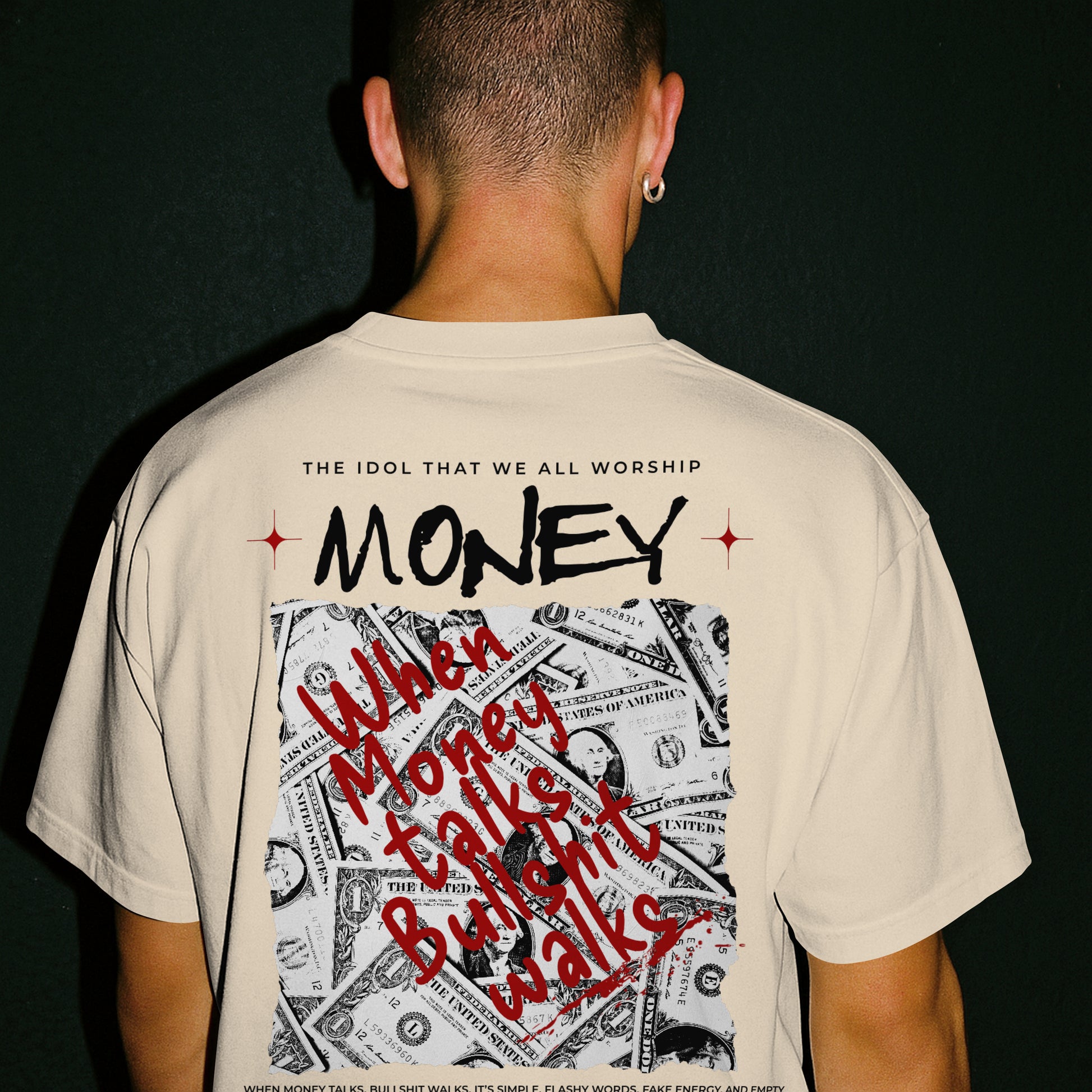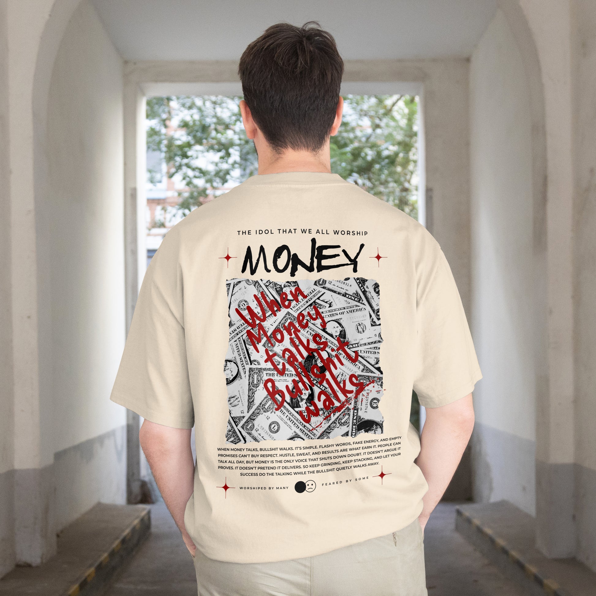 The When Money Talks Tee isn’t just fabric it’s an attitude. Bold screen-printed letters hit the chest like a truth bomb, while the unseen stories behind every step echo through the threads of cynicism, power, and rebellion woven into one statement piece.